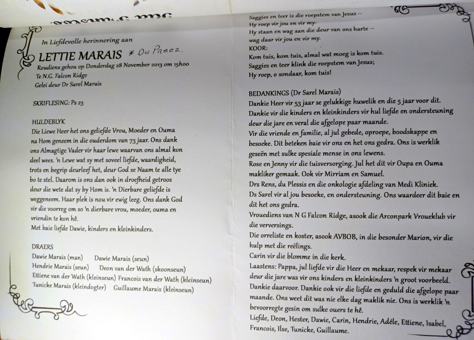 Funeral Programs / Begrafnisbriewe