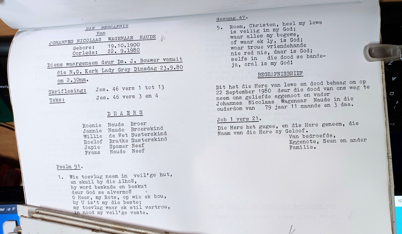 Funeral Programs / Begrafnisbriewe