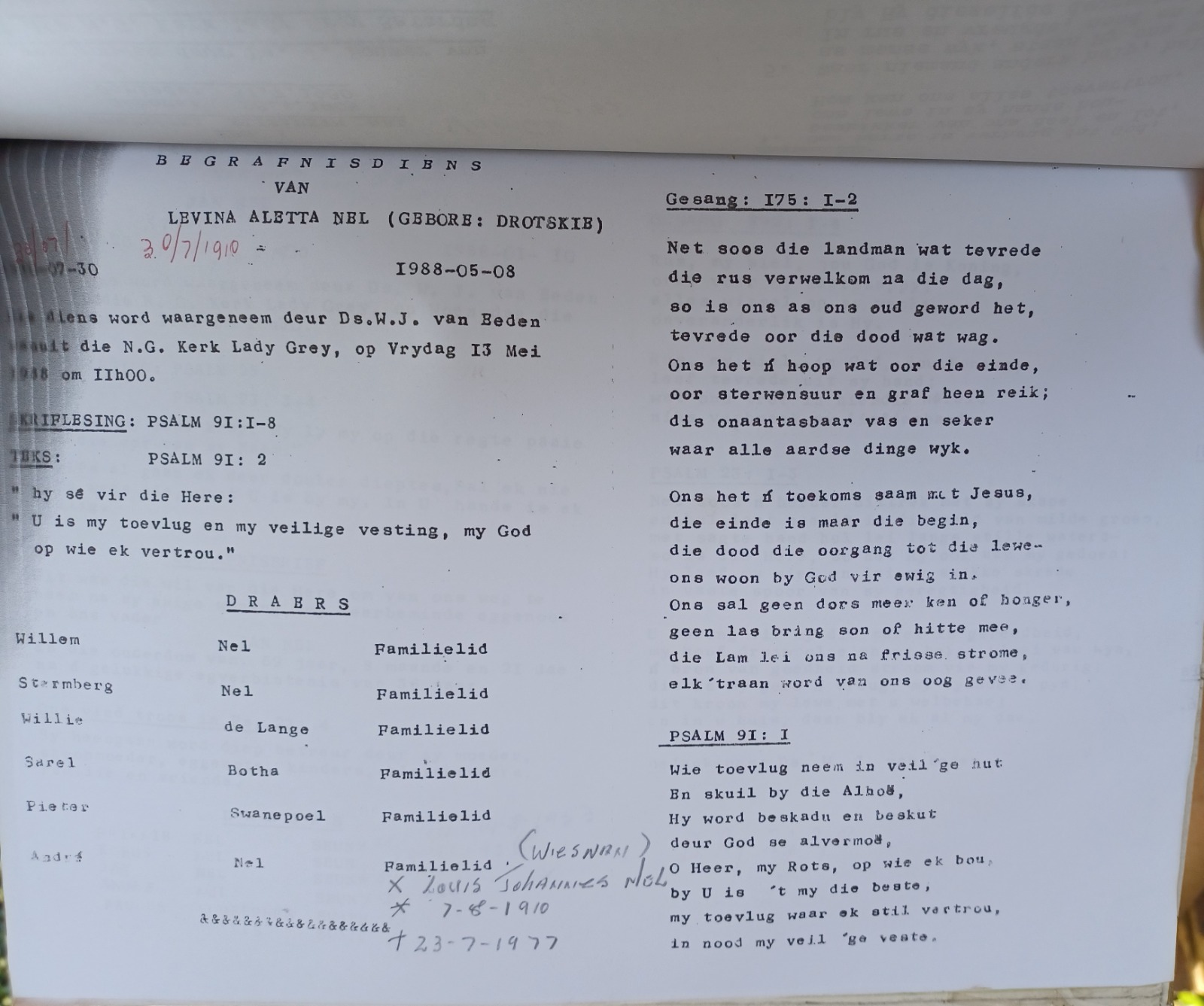 Funeral Programs / Begrafnisbriewe