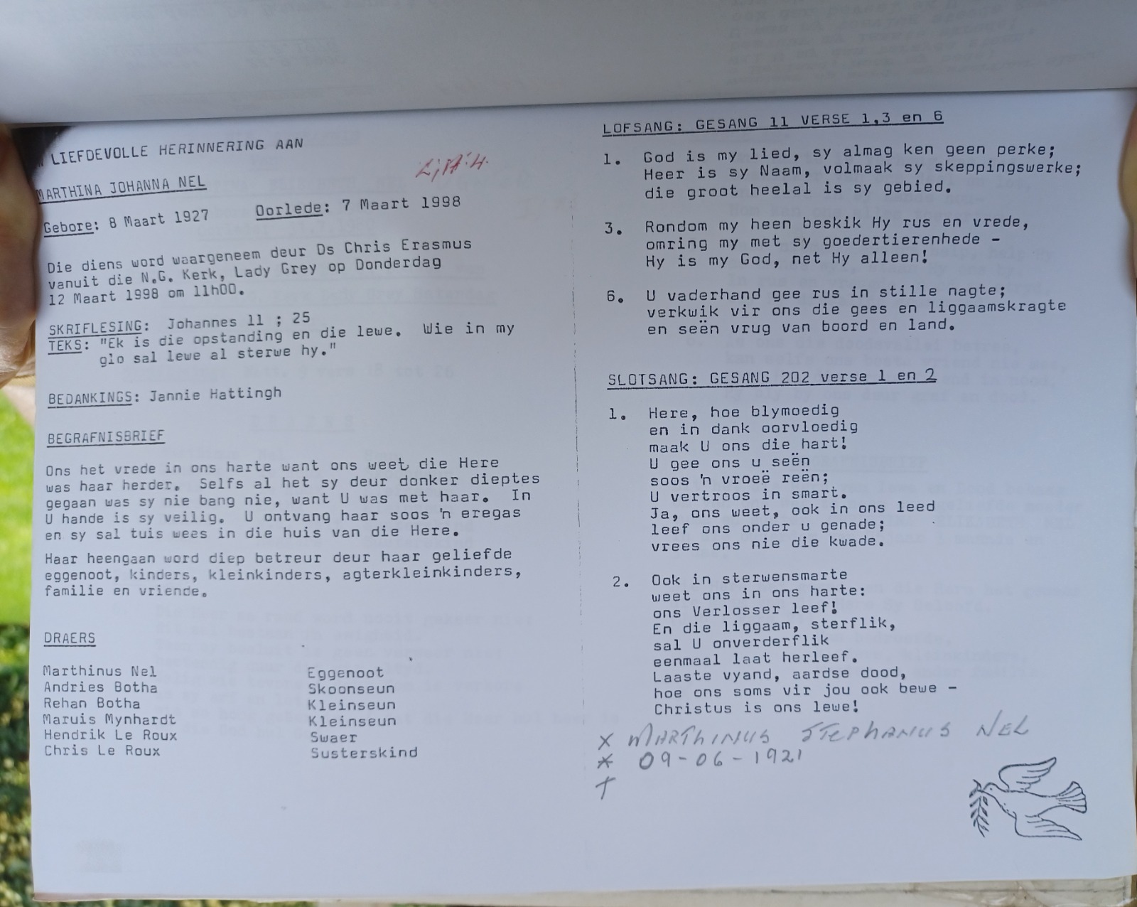 Funeral Programs / Begrafnisbriewe