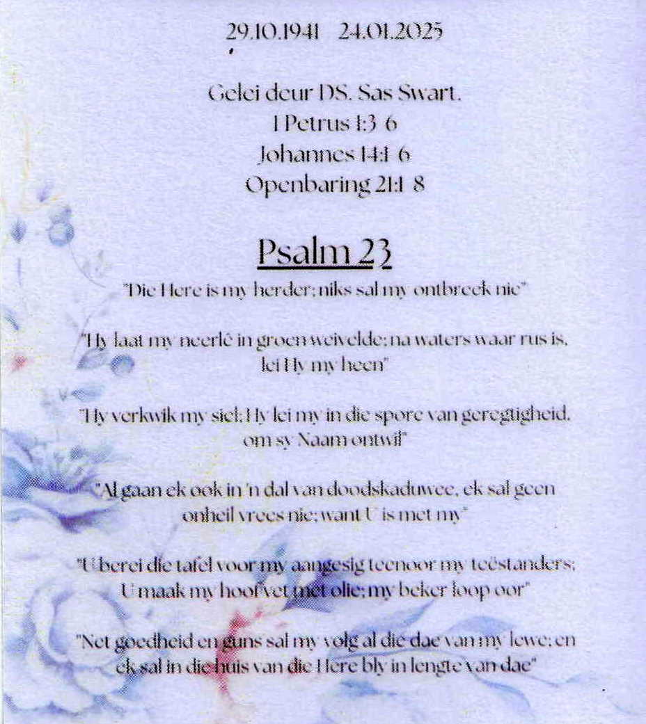 Funeral Programs / Begrafnisbriewe