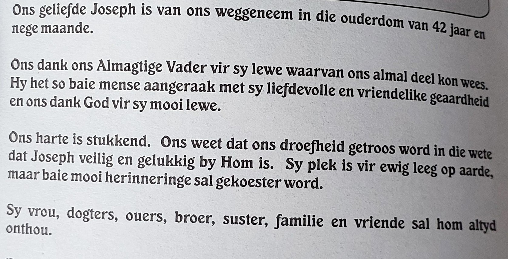 Funeral Programs / Begrafnisbriewe