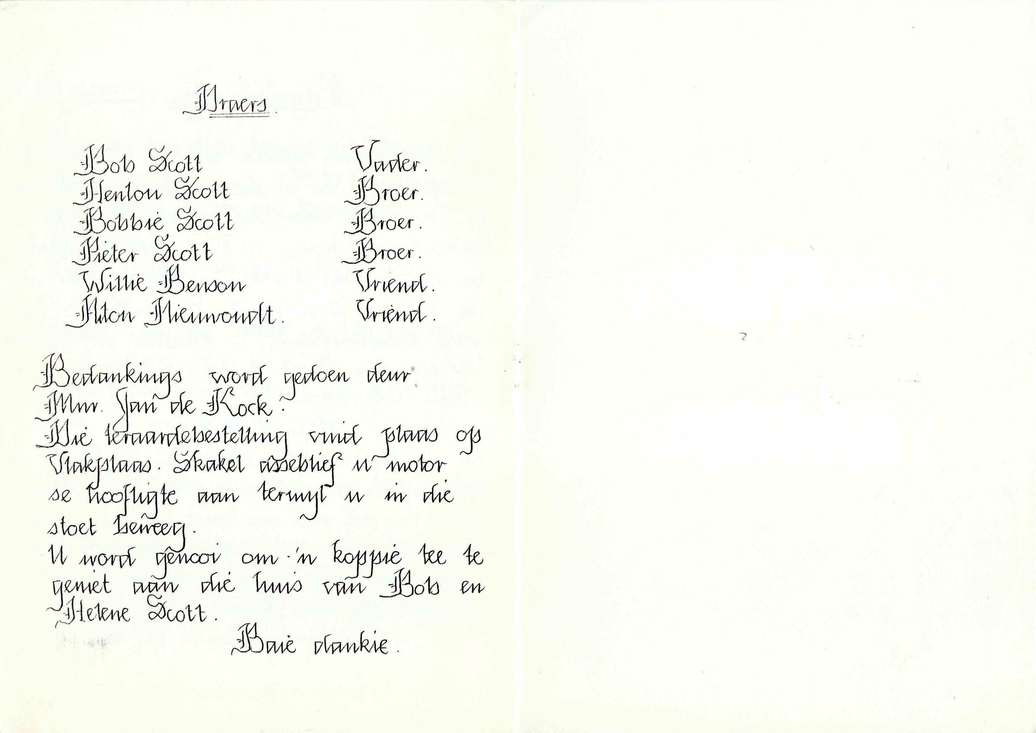 Funeral Programs / Begrafnisbriewe