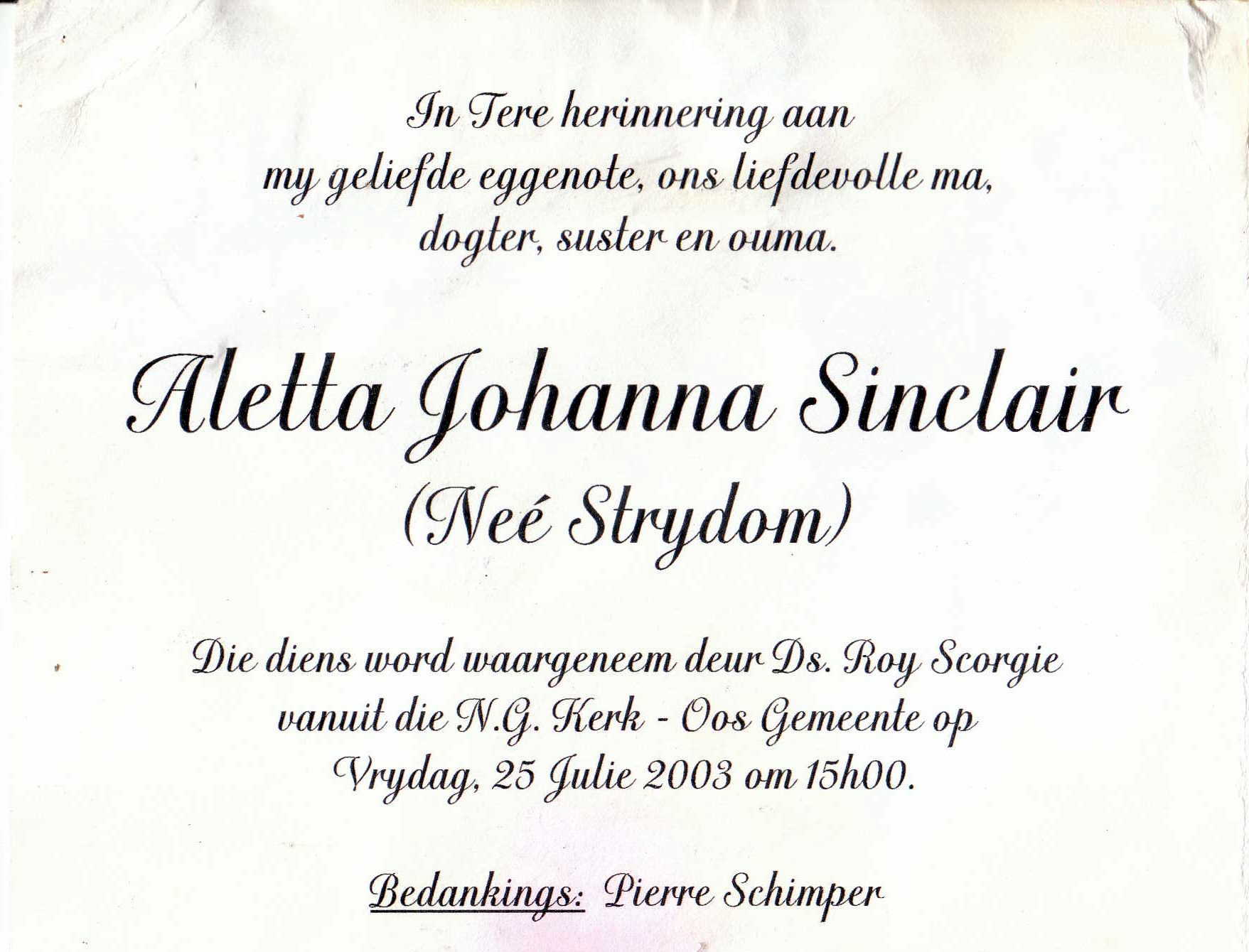 SINCLAIR-Aletta-Johanna-Nn-Aljo-nee-Strydom-1947-2003-F