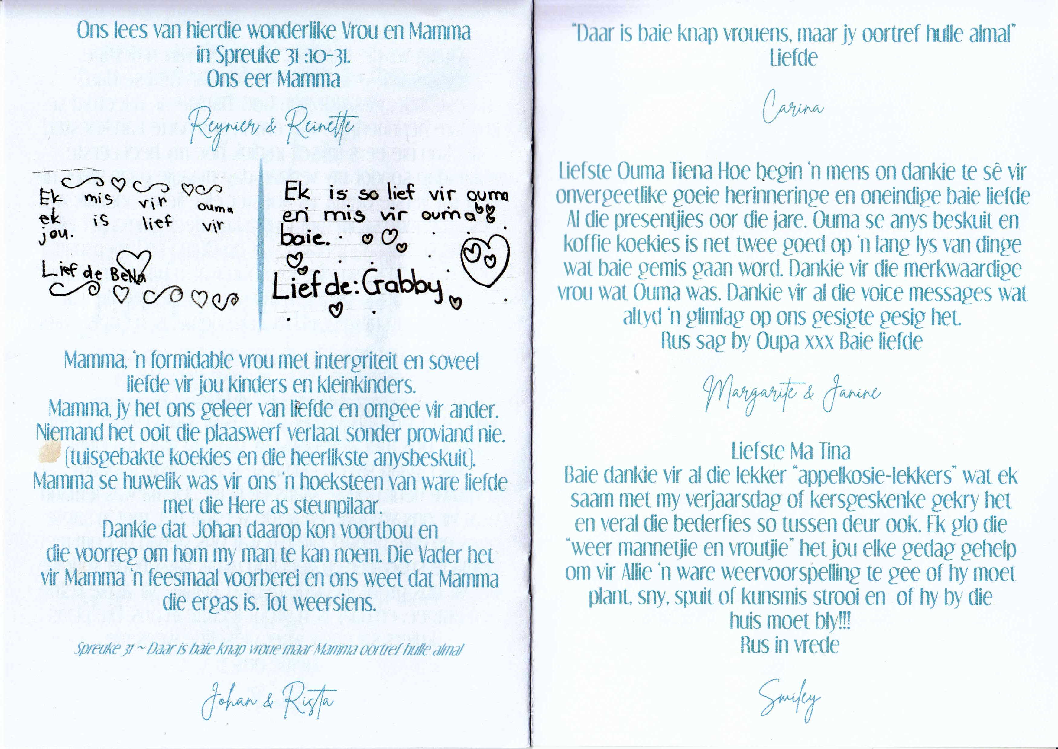 Funeral Programs / Begrafnisbriewe
