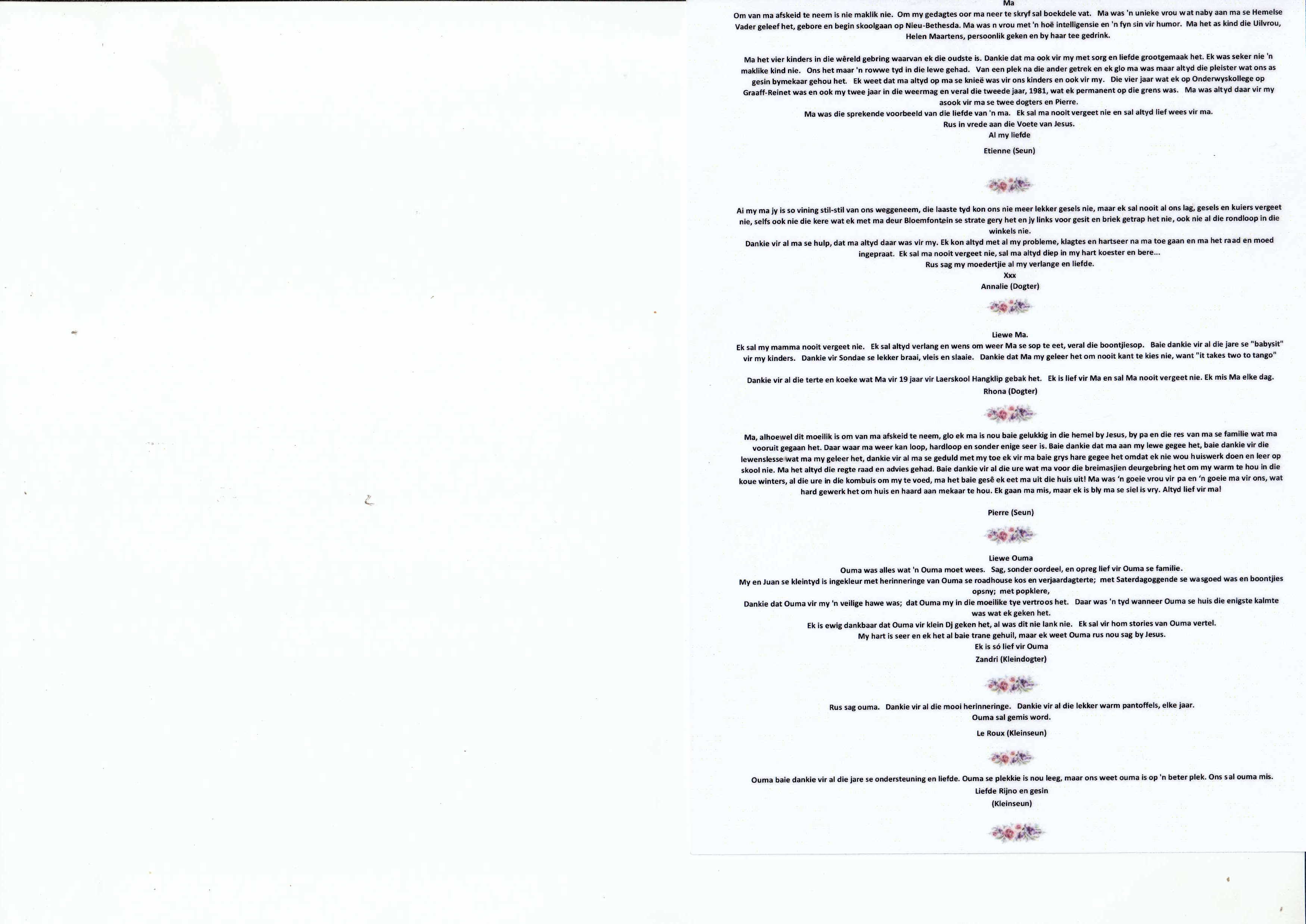 Funeral Programs / Begrafnisbriewe