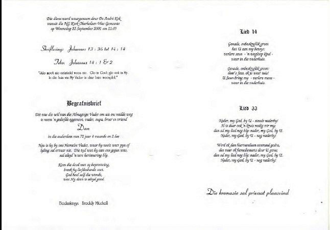Funeral Programs / Begrafnisbriewe