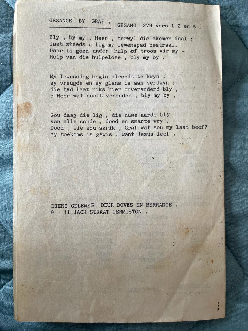Funeral Programs / Begrafnisbriewe