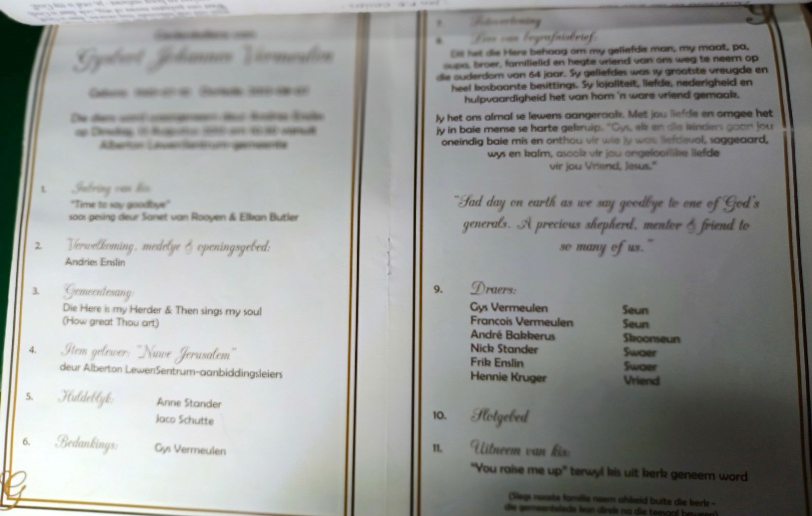 Funeral Programs / Begrafnisbriewe