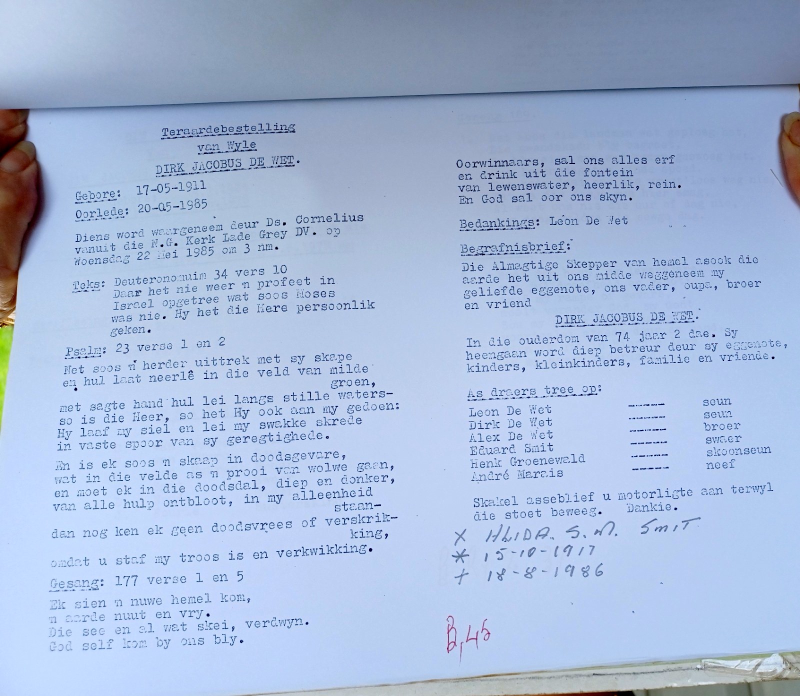 Funeral Programs / Begrafnisbriewe